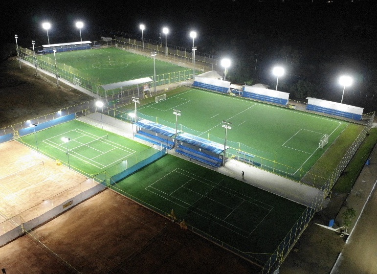 O projeto realizado para a AABB Vitória da Conquista contemplou dois campos de futebol com aplicação da linha Elite, além de soluções para prática de tênis.