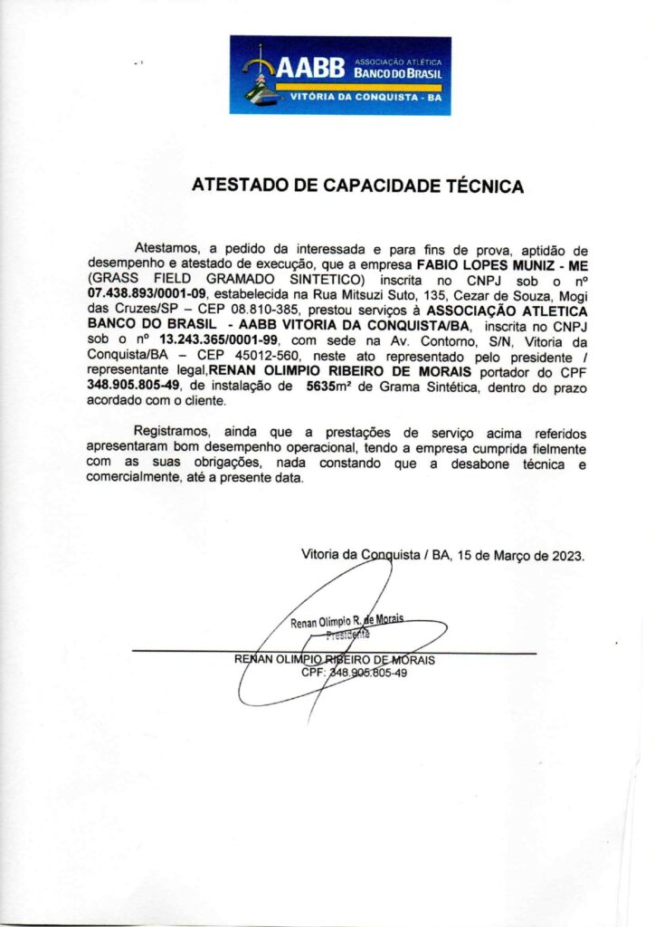 A GrassField já executou mais de 40 projetos para unidades AABB em todo o Brasil, consolidando expertise nacional em instalação de grama sintética esportiva para clubes recreativos.