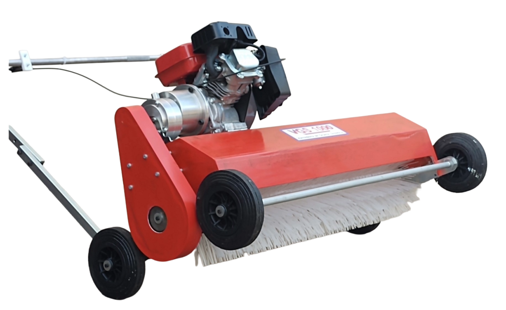 Equipamento que facilita a limpeza e redistribuição do preenchimento, removendo detritos com eficiência e mantendo o campo nivelado e funcional.